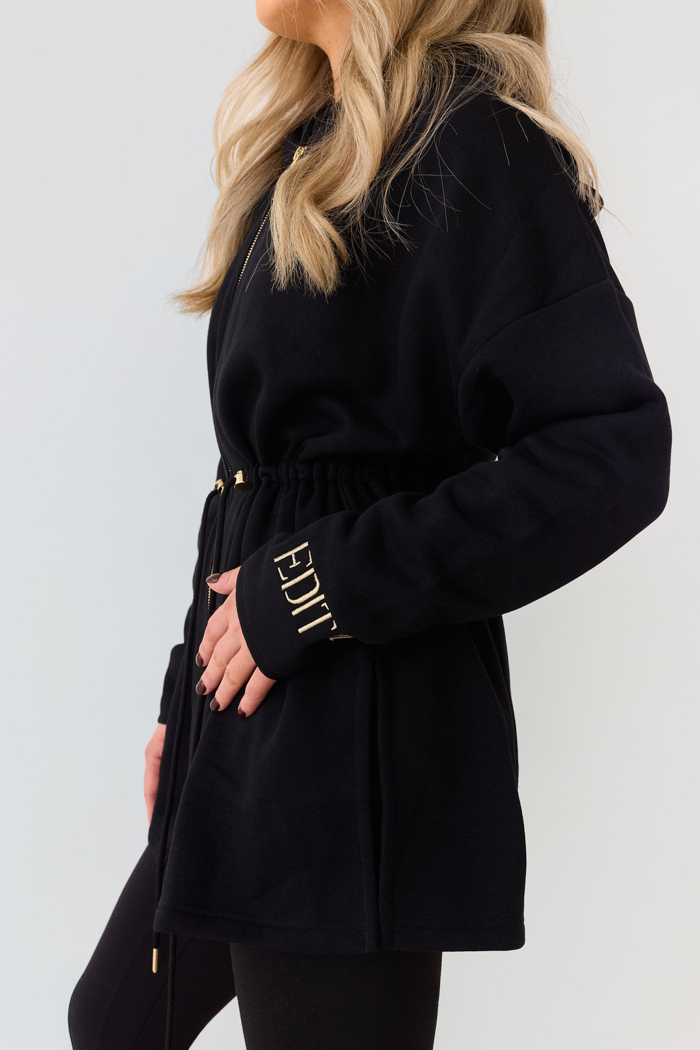 The Klum Full Zip Hoodie combines comfort and style in one effortlessly chic piece, crafted from luxuriously soft fabric with a flattering drawstring waist that lets you cinch it in for a more tailored silhouette.