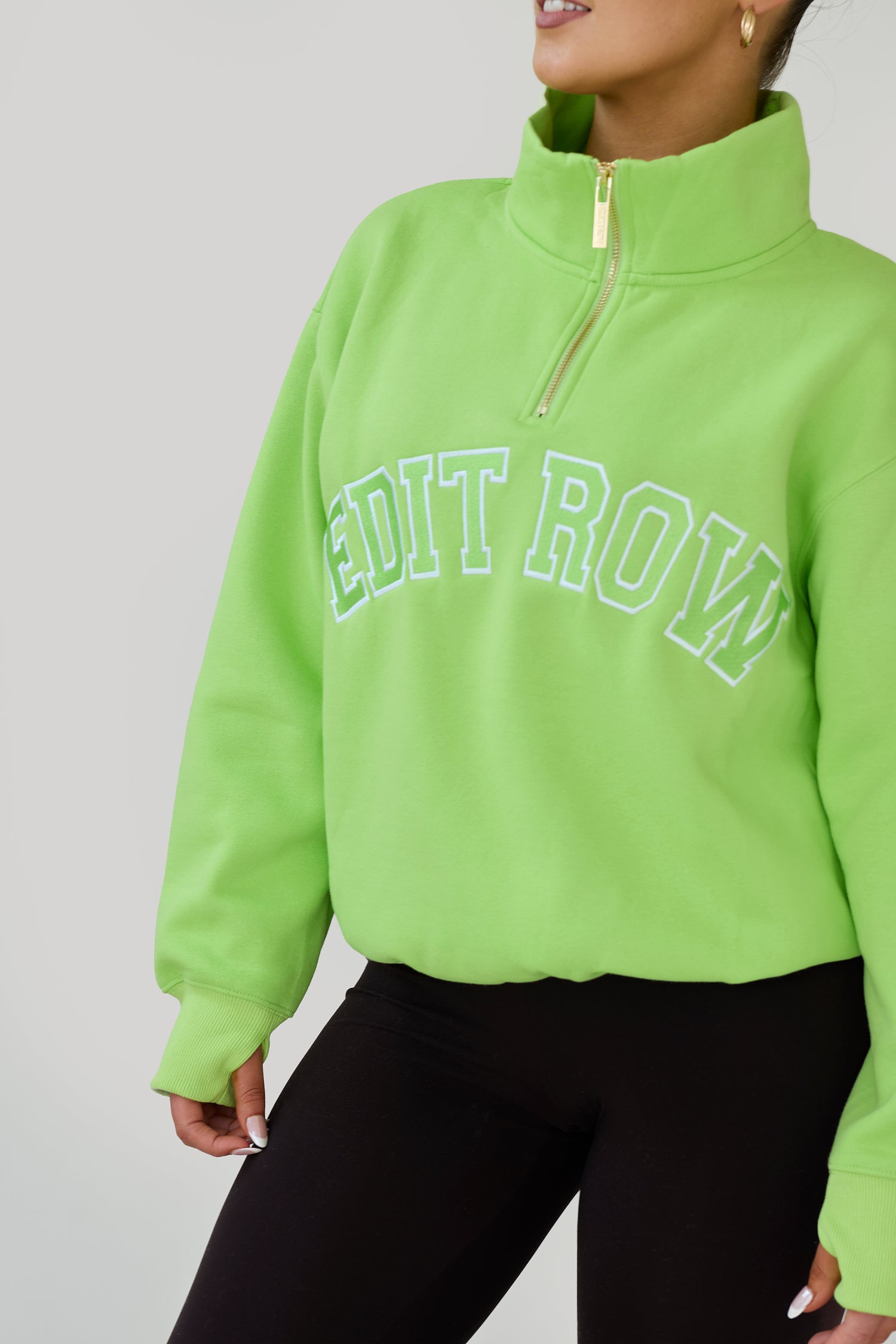 Featuring our signature funnel neck, a luxe gold zip detail, and standout 3D embroidered “EDIT ROW” logo, this piece blends comfort with effortless cool.