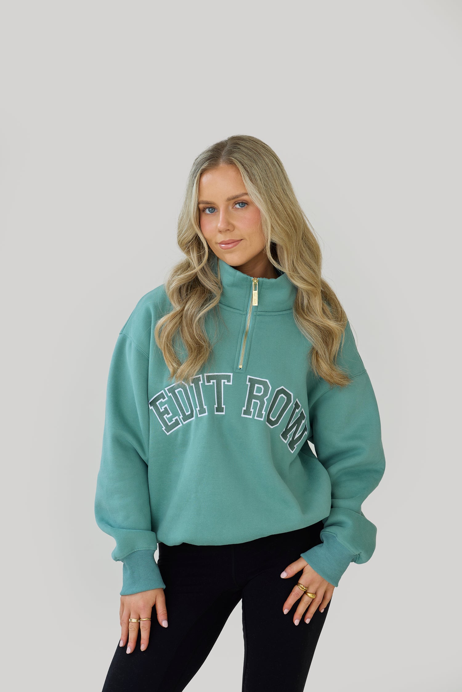 Featuring our signature funnel neck, a luxe gold zip detail, and standout 3D embroidered “EDIT ROW” logo, this piece blends comfort with effortless cool.