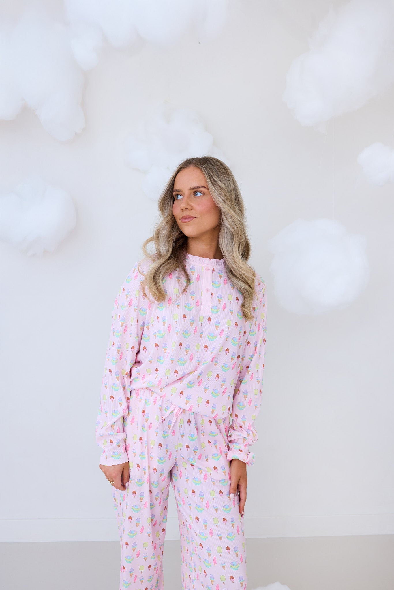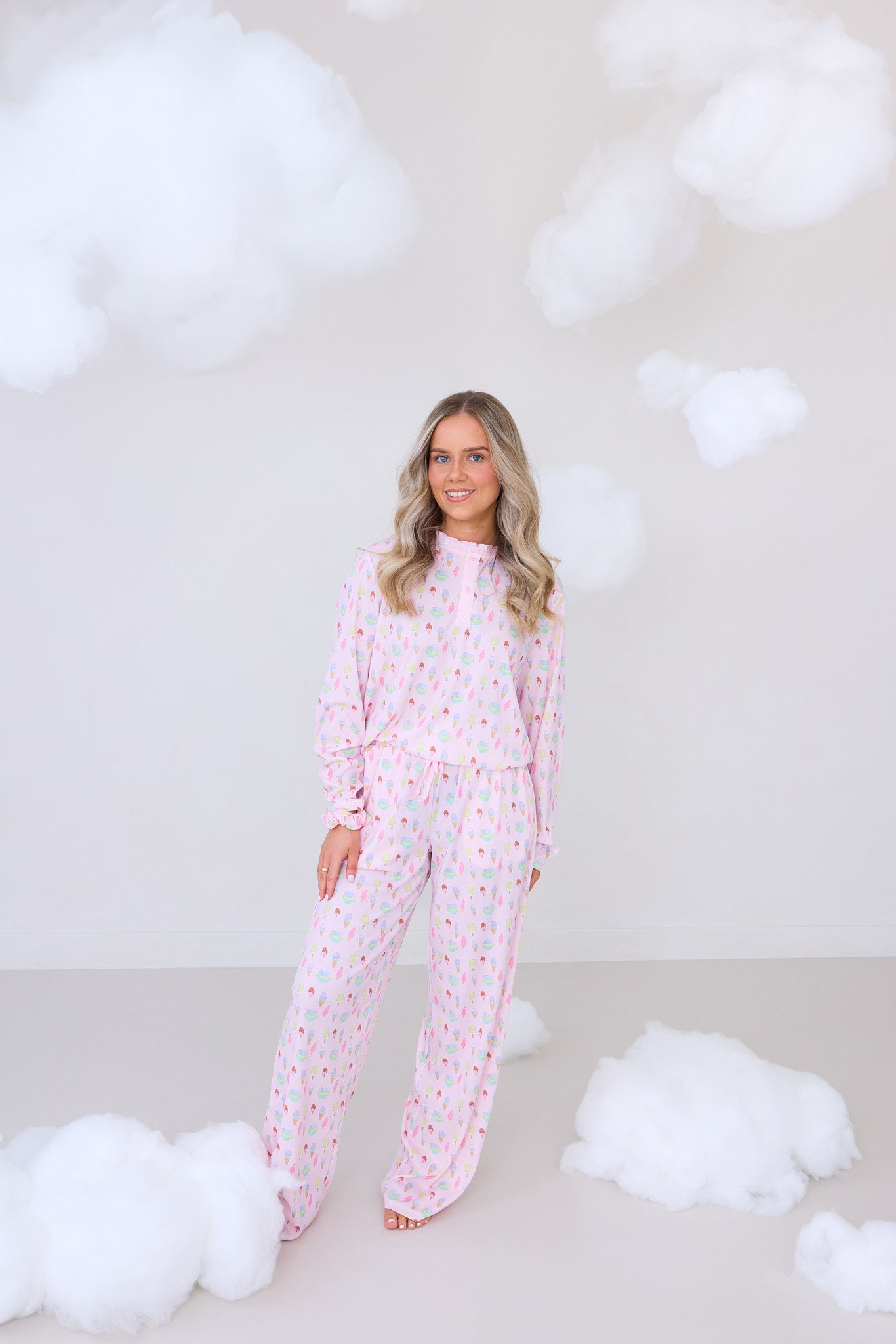 Sprinkled with playful ice cream patterns, this girly design is as sweet as it is cosy. Each set comes tucked inside a dreamy drawstring bag with a matching scrunchie in the same print—making it extra special whether you’re gifting or treating yourself.