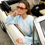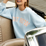 Upgrade your wardrobe with our Varsity Summer Blues Collegiate Crew! Made from soft cotton and brushed fleece underlining, this stylish piece boasts a bold 3D embroidered logo and can be dressed up with denim or paired with our Edit Row leggings for a casual, sporty look. Comfort and style all in one!