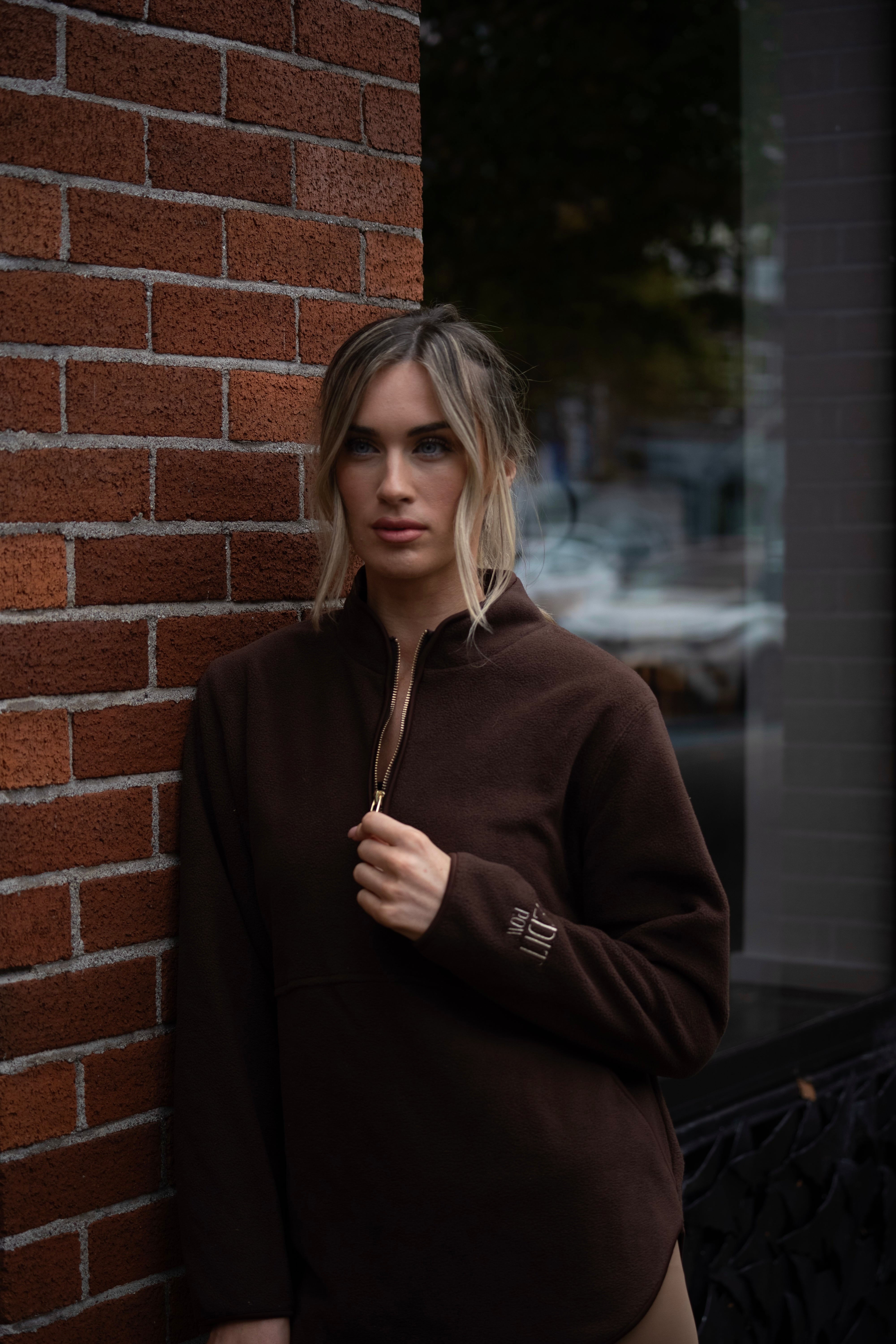 Half zip fastening along front